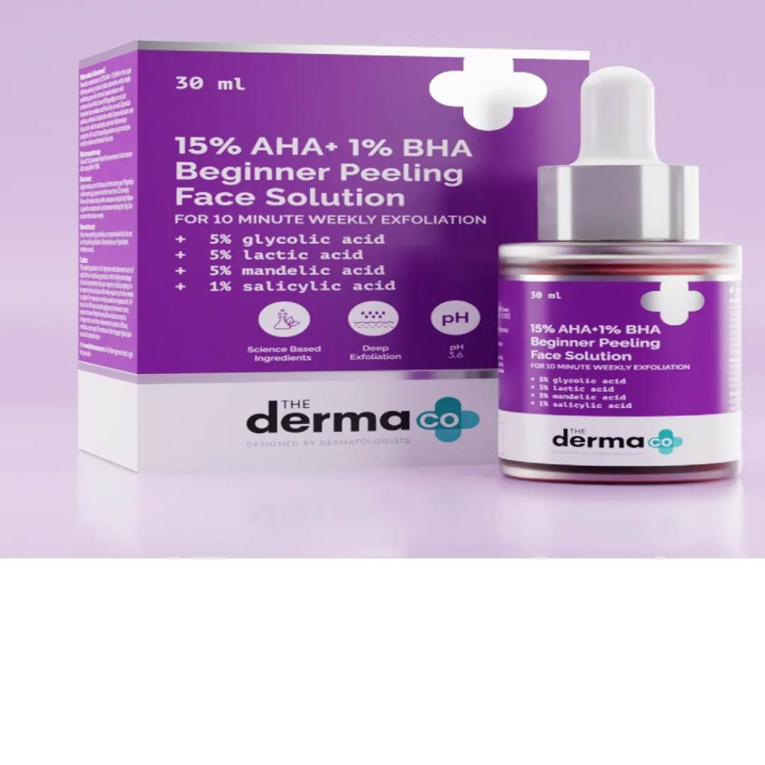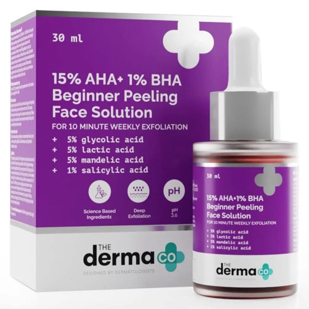 OFFERS GENTLE EXFOLIATION: Crafted with the powerful formulation of 5% Glycolic Acid, 5% Lactic Acid, 5% Mandelic Acid and 1% Salicylic Acid, the 15% AHA + 1% BHA Beginner Face Peeling Solution provides gentle yet effective exfoliation. The presence of AHA & BHA in this peeling solution exfoliates dead skin cell build-up and removes impurities from the pores to impart a healthy glow and unveil radiant skin.