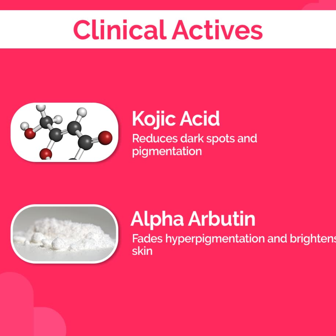Makes Skin Spotless: Make way for spotless, clear, and healthy skin with skincare superheroes like Kojic Acid, Alpha Arbutin, and Hyaluronic Acid that are just what your skin needs to be in the pink of its health while being clear and fantastic.