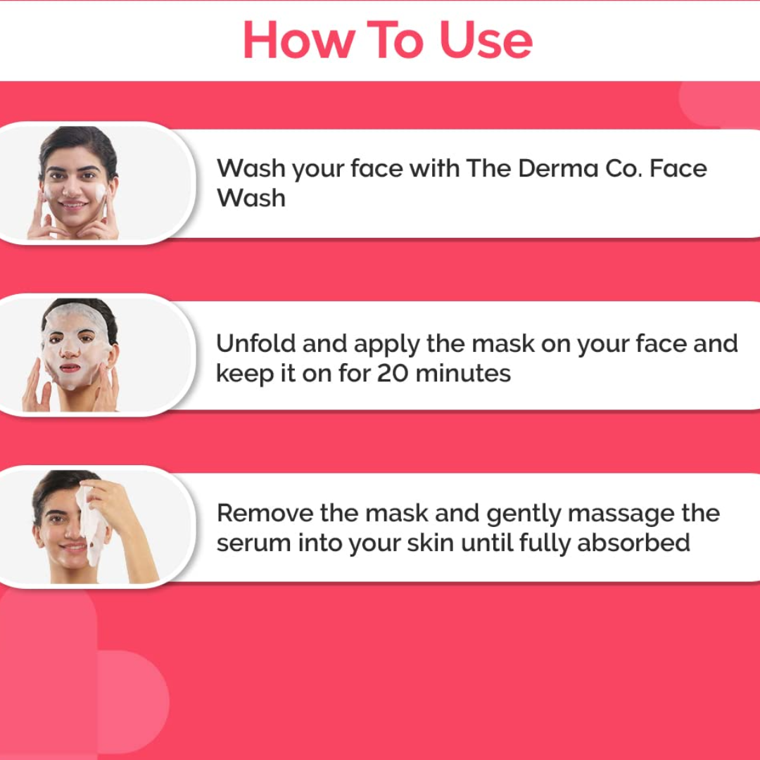 Fights Dark Spots & Pigmentation: Clear, younger, and healthy skin is now just 20 minutes away! The Derma Co 1% Kojic & Arbutin Sheet Mask is just what you need for clear skin. With its potent formulation, Kojic Acid in this Sheet Mask reduces pigmentation, dark spots, blemishes, and signs of aging. Alpha Arbutin, on the other hand, gives you an even skin tone and restores a natural glow.