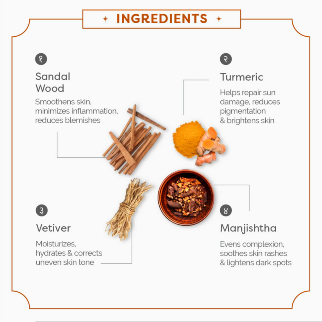 2% Chandanam Skin Brightening Sunscreen shields your skin from harmful UVA and UVB rays, keeping sun damage at bay. It is extremely moisturizing and penetrates deep into the skin to improve hydration levels, making skin soft, supple and plump.