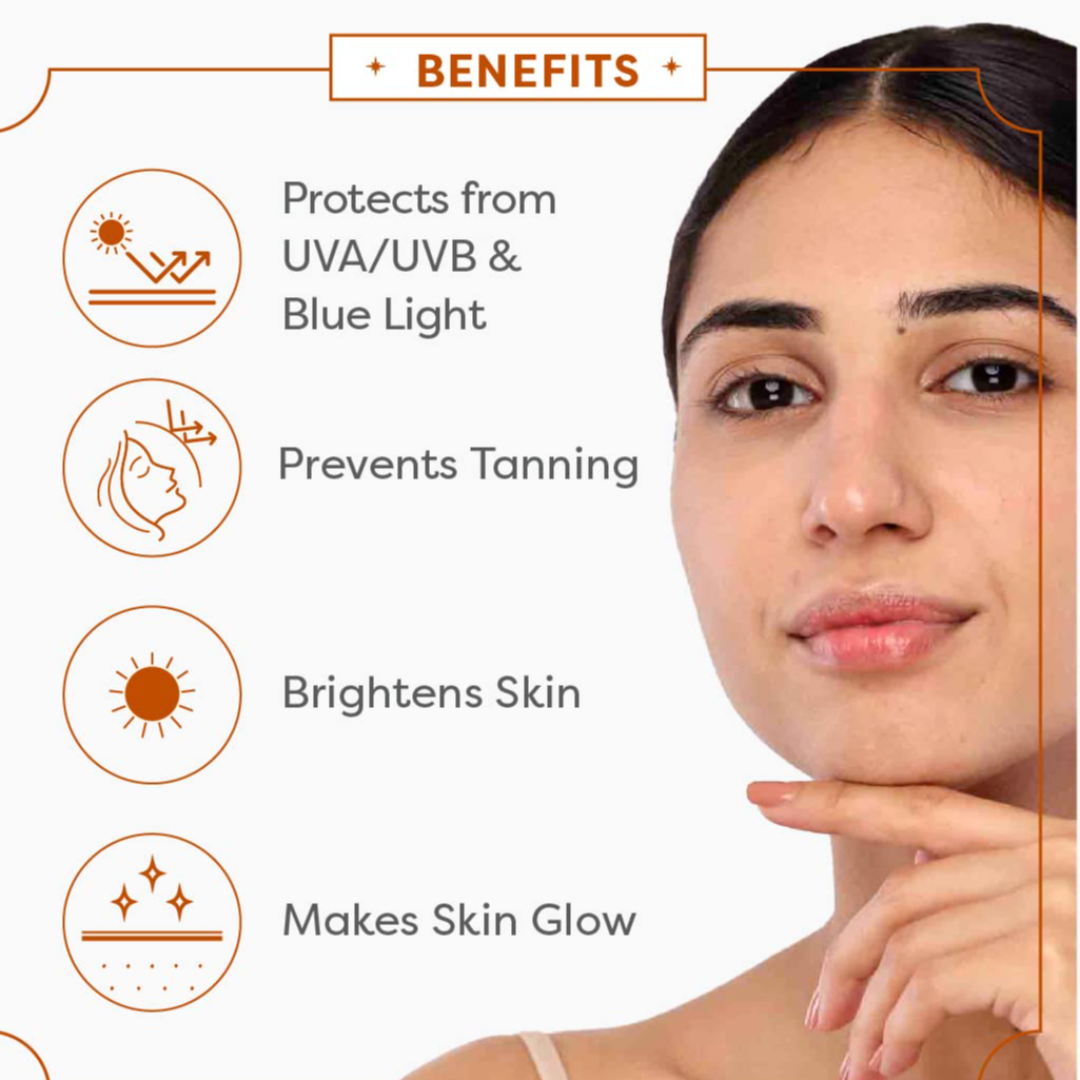 Protects against UVA/UVB & Blue Light, Brightens Skin, Prevents Tanning