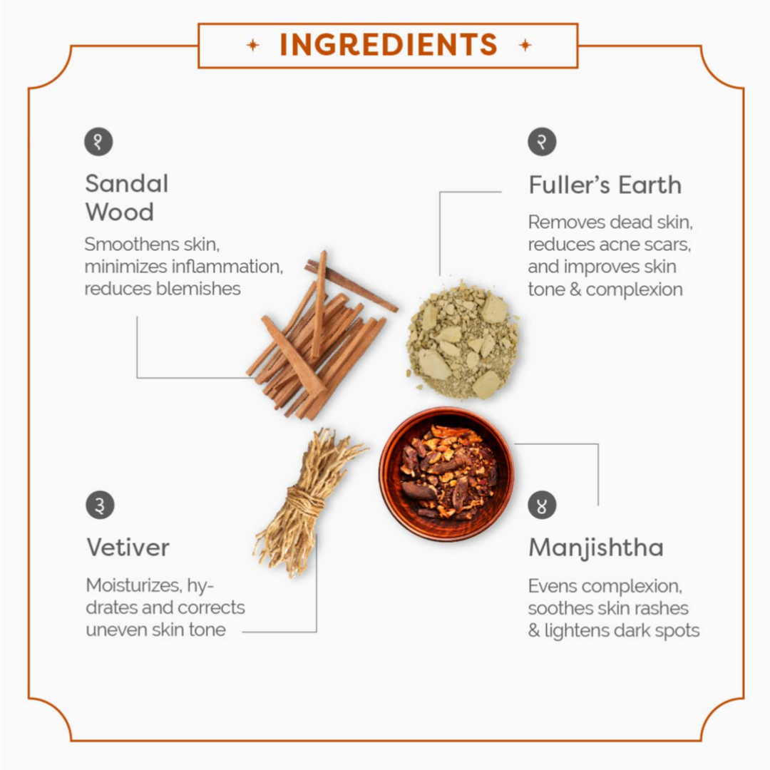 • Soothes Skin to Make it Smooth & Plump An Ayurvedic blend of Sandalwood, Turmeric and 26 herbs, the Moisturizer soothes the skin to make it smooth and plump, imparting it a youthful glow.