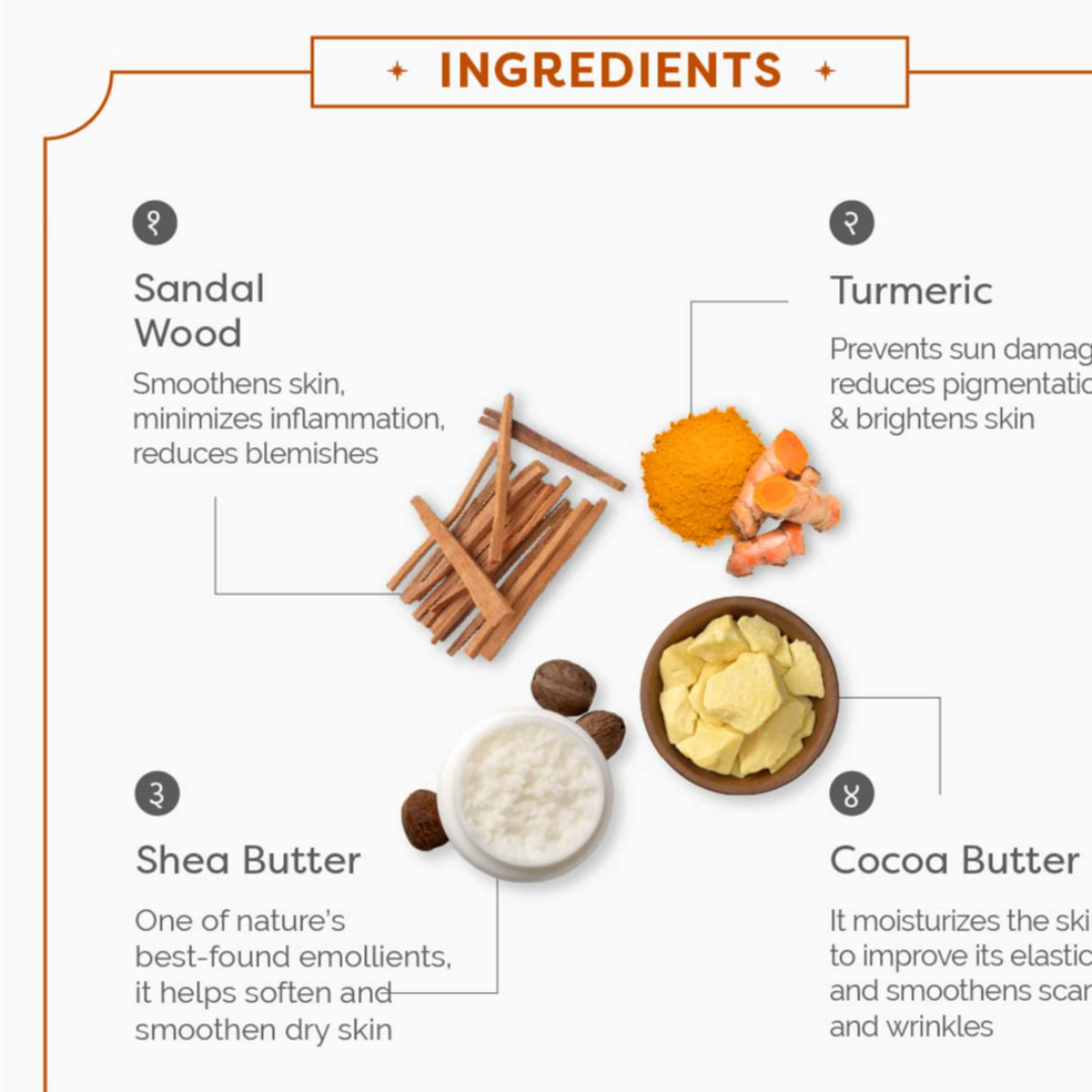 • Reduces Tan & Brightens Skin: Chandanam Cold Cream is packed with Sandalwood that has anti-inflammatory properties which reduces tan & irritation on the skin to bring out a spotless glow.