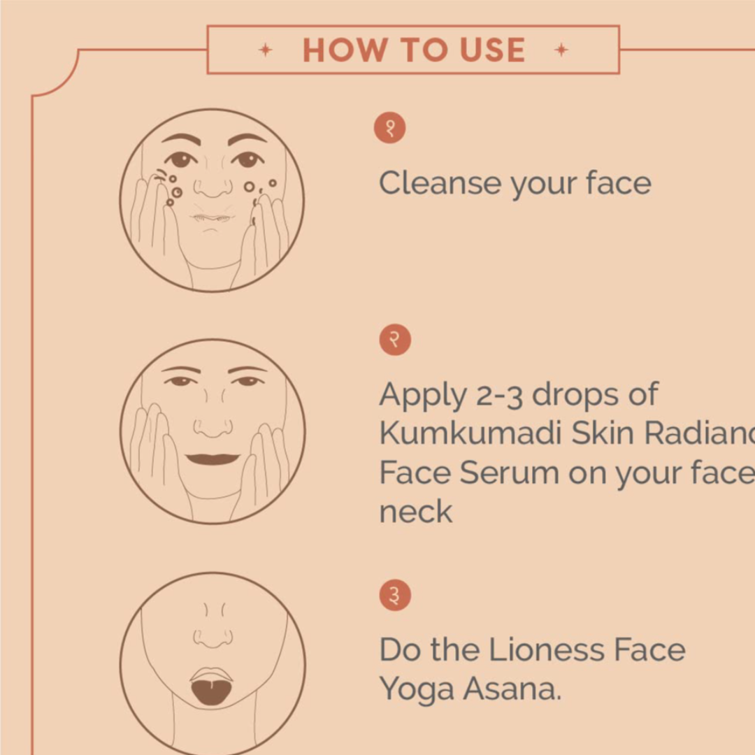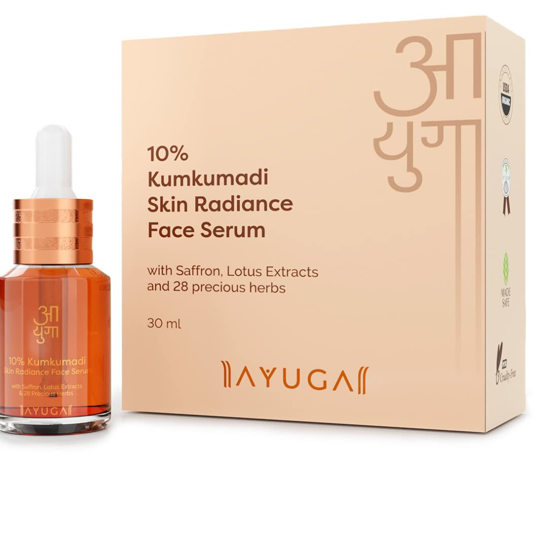 Makes skin radiant the skin brightening and glowing ingredients in the 10% kumkumadi skin radiance face serum penetrate deep into the skin to improve hydration level, helping you achieve soft, plump, youthful, and naturally radiant skin.