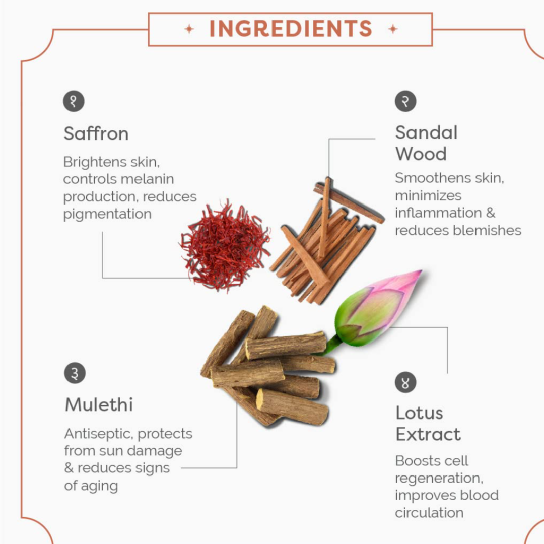 Made with 10% Kumkumadi Oil - Prescribed as an essential beauty treatment in the ancient Ayurvedic text of Astanga Hridyam, our Serum is made with Kumkumadi Oil which is clinically proven to brighten & illuminate skin by reducing dark spots, pigmentation, and signs of aging. The formulation contains Saffron, Lotus Extract, and 28 additional herbs. The formulation contains a blend of USDA-certified organic ingredients like Saffron, Lotus Extract, and 28 additional herbs.