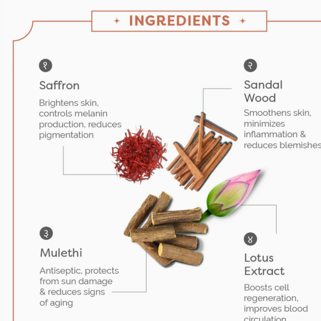 Deeply Cleanses Skin: Crafted with a traditional ayurvedic recipe, the 5% kumkumadi skin radiance face wash is perfect for everyday use. Its natural ingredients like saffron, rose water, lotus extracts and more help in deeply cleansing the skin, resulting in natural glow after every use.