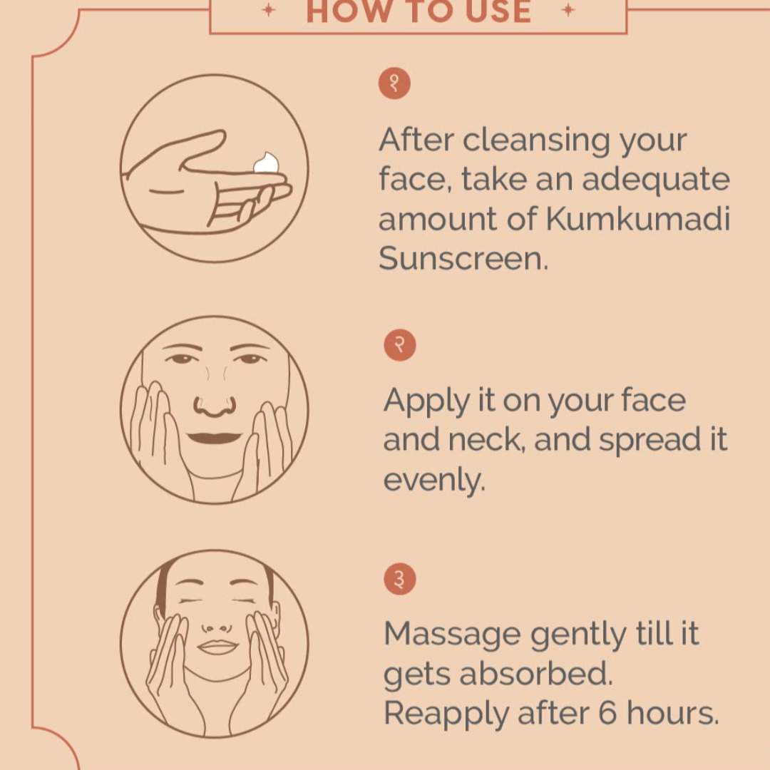 Lightweight, Non-greasy & Easy-to-Absorb The Kumkumadi Sunscreen has a lightweight texture and a non-greasy formula that absorbs easily into the skin without leaving any white residue or making the skin oily.