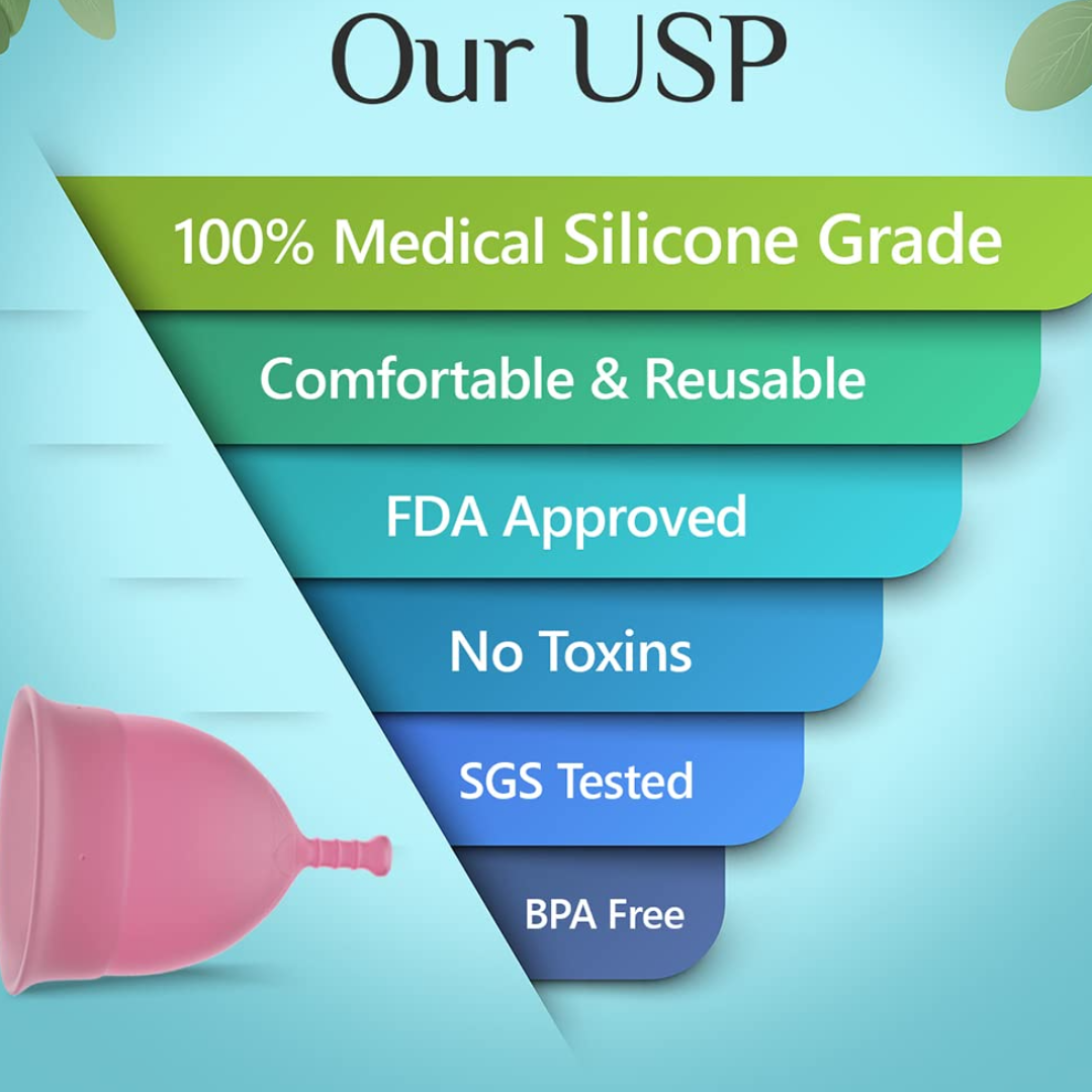SAFE & LEAK PROOF: The flexible rim of the menstrual cup creates a vacuum seal that ensures there are no leakages or spills even as you indulge in physical activity or travel. All our products are made in FDA approved facility and is Latex and BPA free.