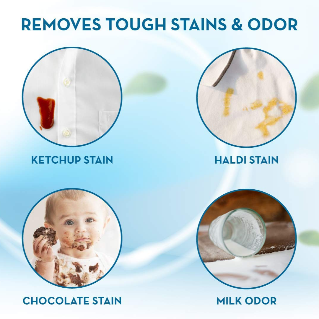 ANTI BACTERIAL With ingredients such as Neem extract, the detergent has antibacterial properties that help in getting rid of the bacteria arising from milk, drool or food spilled on clothes, sweat etc.<br>