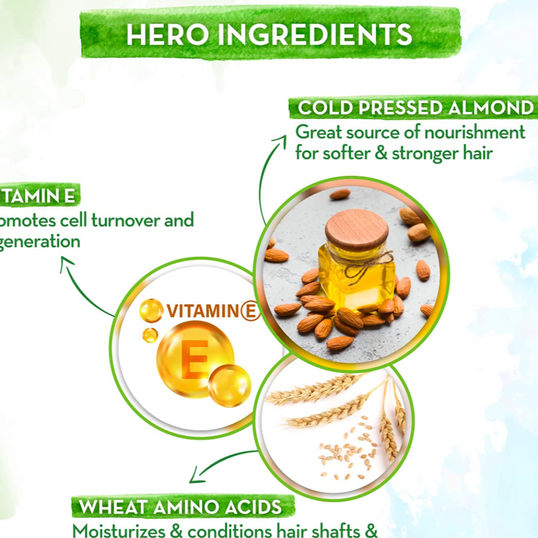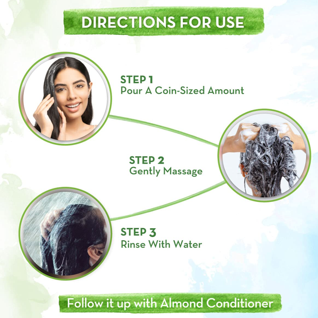 MADE WITH NATURAL INGREDIENTS: Made using natural ingredients, the Almond Shampoo is free from Silicone, Sulfates, Parabens, SLS, Petroleum, Artificial Preservatives & Colors.; SUITABLE FOR ALL HAIR TYPES: Almond Shampoo is dermatologically tested and is suitable for all hair types.