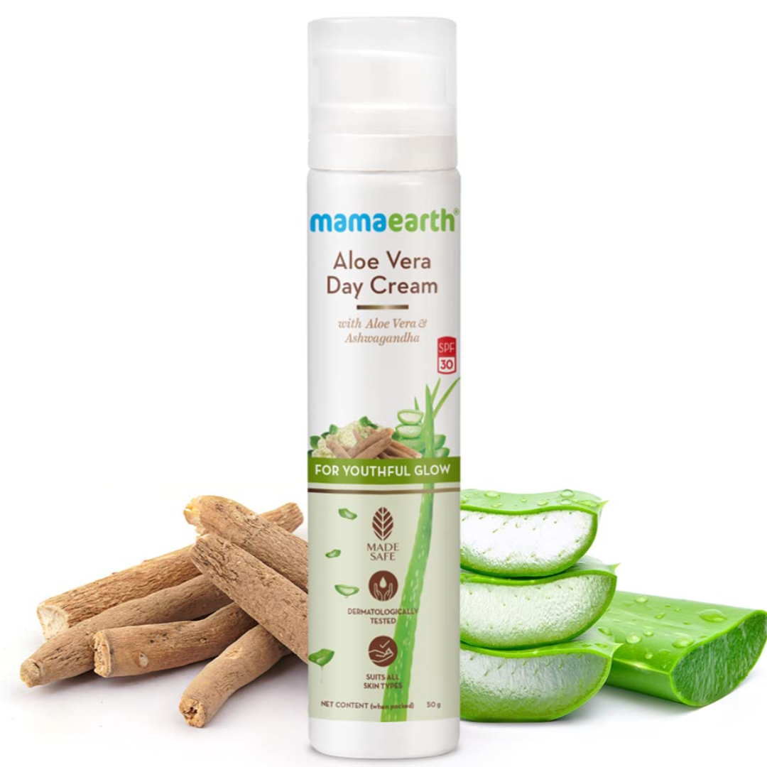 Mamaearth Aloe Vera Day Cream with SPF 30 with Aloe Vera & Ashwagandha for a Youthful Glow - 50 g