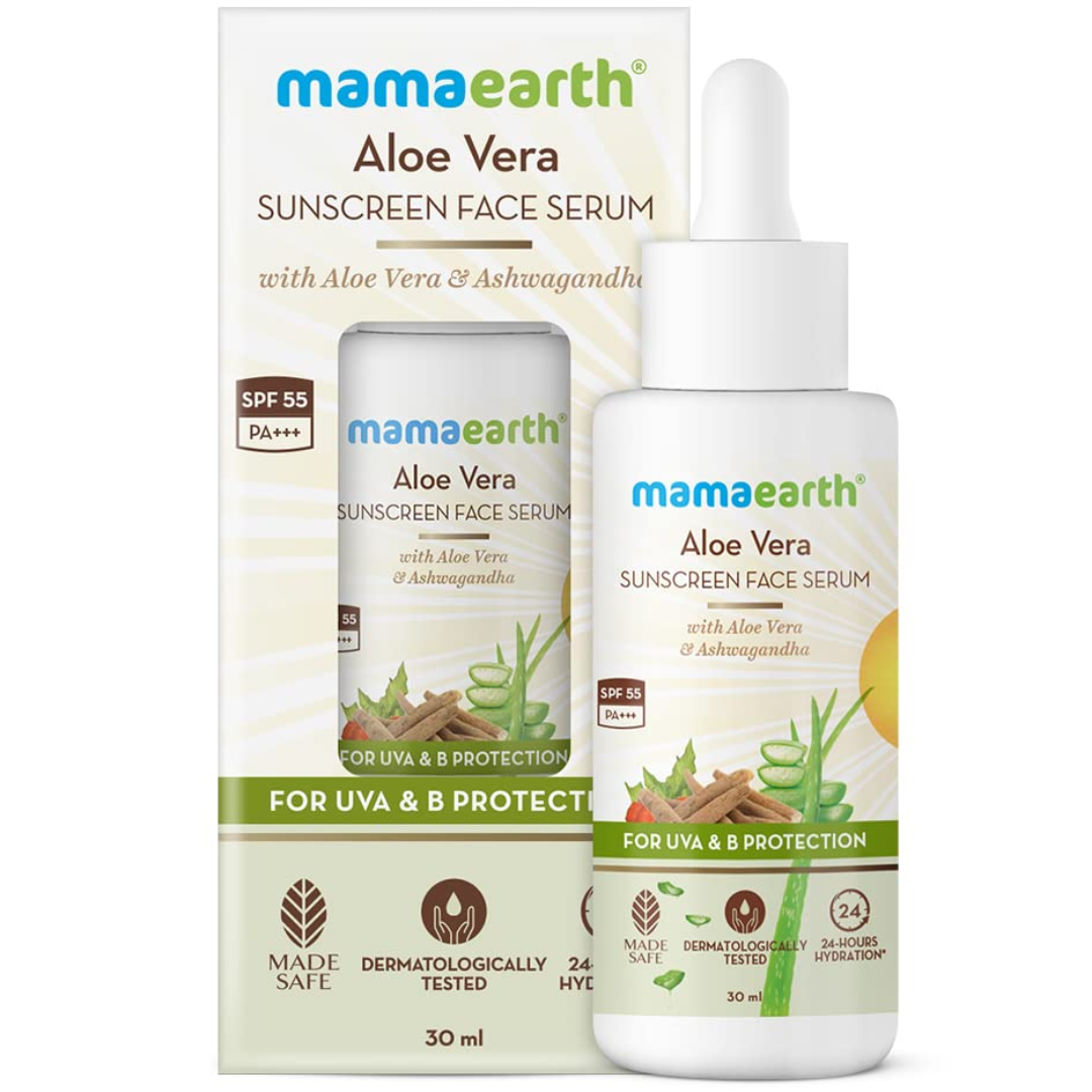 mamaearth Aloe Vera Sunscreen Face Serum With Aloe Vera & Ashwagandha for UVA & B Protection - 30 ml