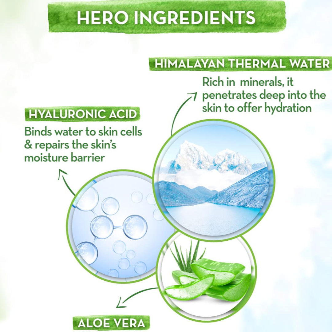 GOODNESS OF HIMALYAN THERMAL WATER: Ultimate shot of natural hydration for your skin! Rich in minerals like Magnesium, Potassium & Calcium, Himalyan Thermal Water helps maintain the skin’s barrier, promoting healthy and youthful skin.