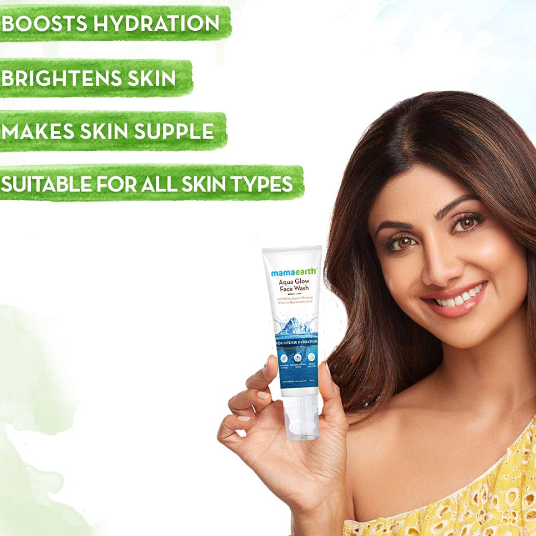 BOOSTS HYDRATION Don’t wait, hydrate! Give your skin the extra dose of hydration it craves with Himalayan Thermal Water and Hyaluronic Acid. Up your plump game with Mamaearth Aqua Glow Face Wash that holds moisture in the skin cells.