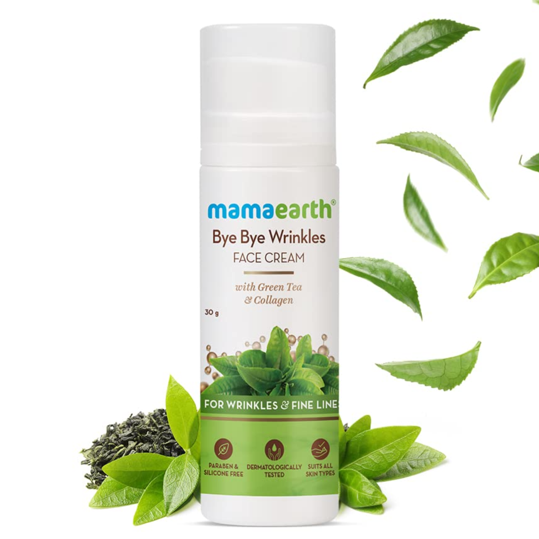 Mamaearth Bye Bye Face Cream For Women Anti Ageing, For Fine Line & Wrinkles, with Green Tea & Collagen - 30 g