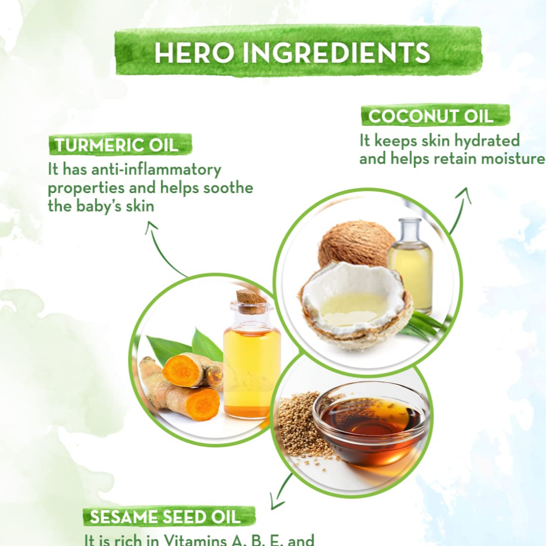 SOOTHES ITCHINESS: Our Coco Soft Massage Oil is enriched with Turmeric that soothes itchiness and safeguards your baby’s skin from infections.