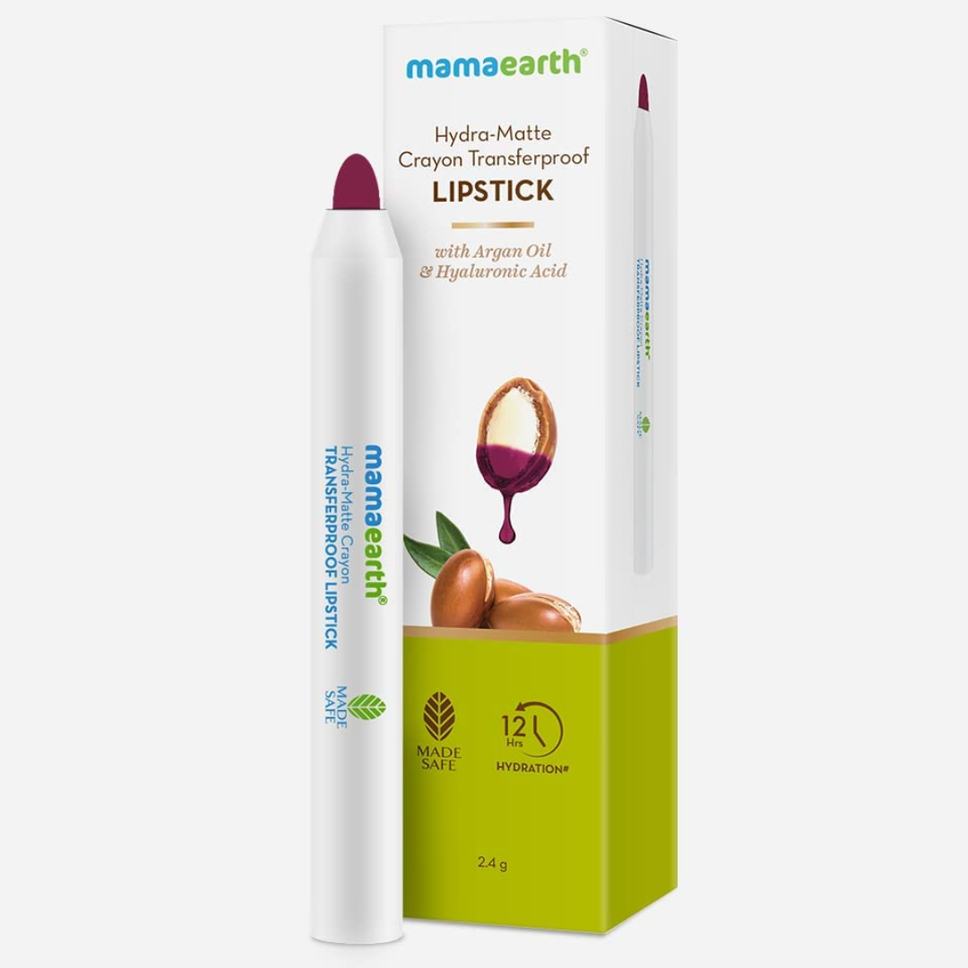 Mamaearth Hydra-Matte Crayon Transferproof Lipstick With Argan Oil & Hyaluronic Acid - 04 Passionfruit Wine 2.4 G