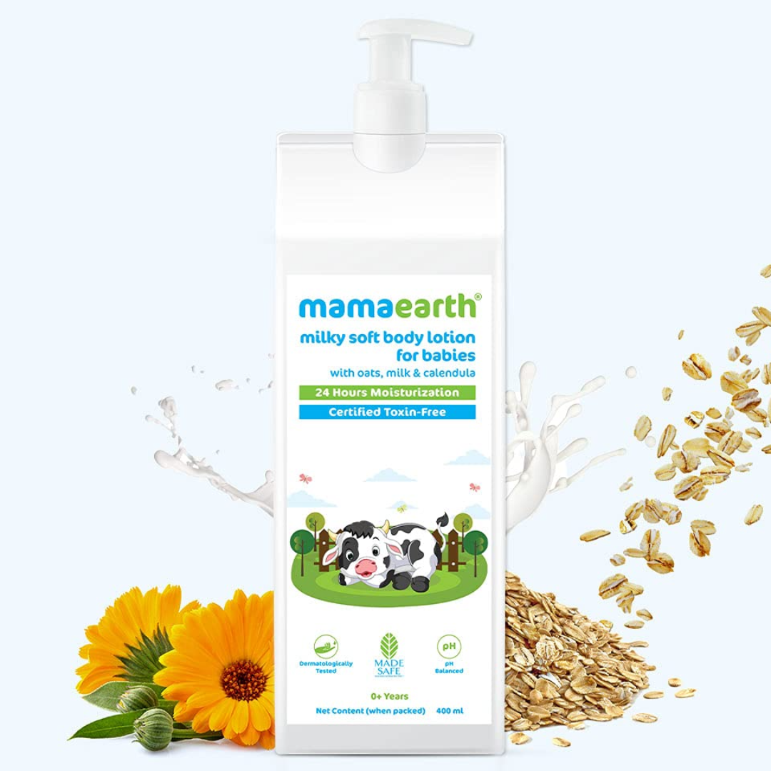 Mamaearth Milky Soft Body Lotion for Babies with Oats, Milk and Calendula for 24 Hour Moisturization - 400ml