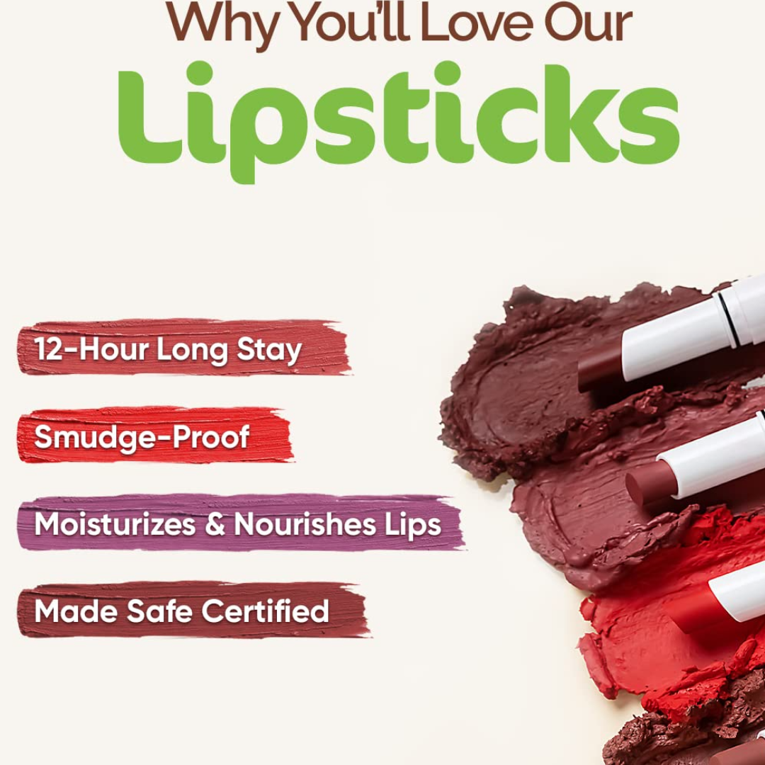 MADE SAFE CERTIFIED: No nasties, no toxins! Just a beautiful matte color and oodles of care, for your lips only! Mamaearth Moisture Matte Longstay Lipsticks are dermatologically tested and are safe for all skin types.<br>