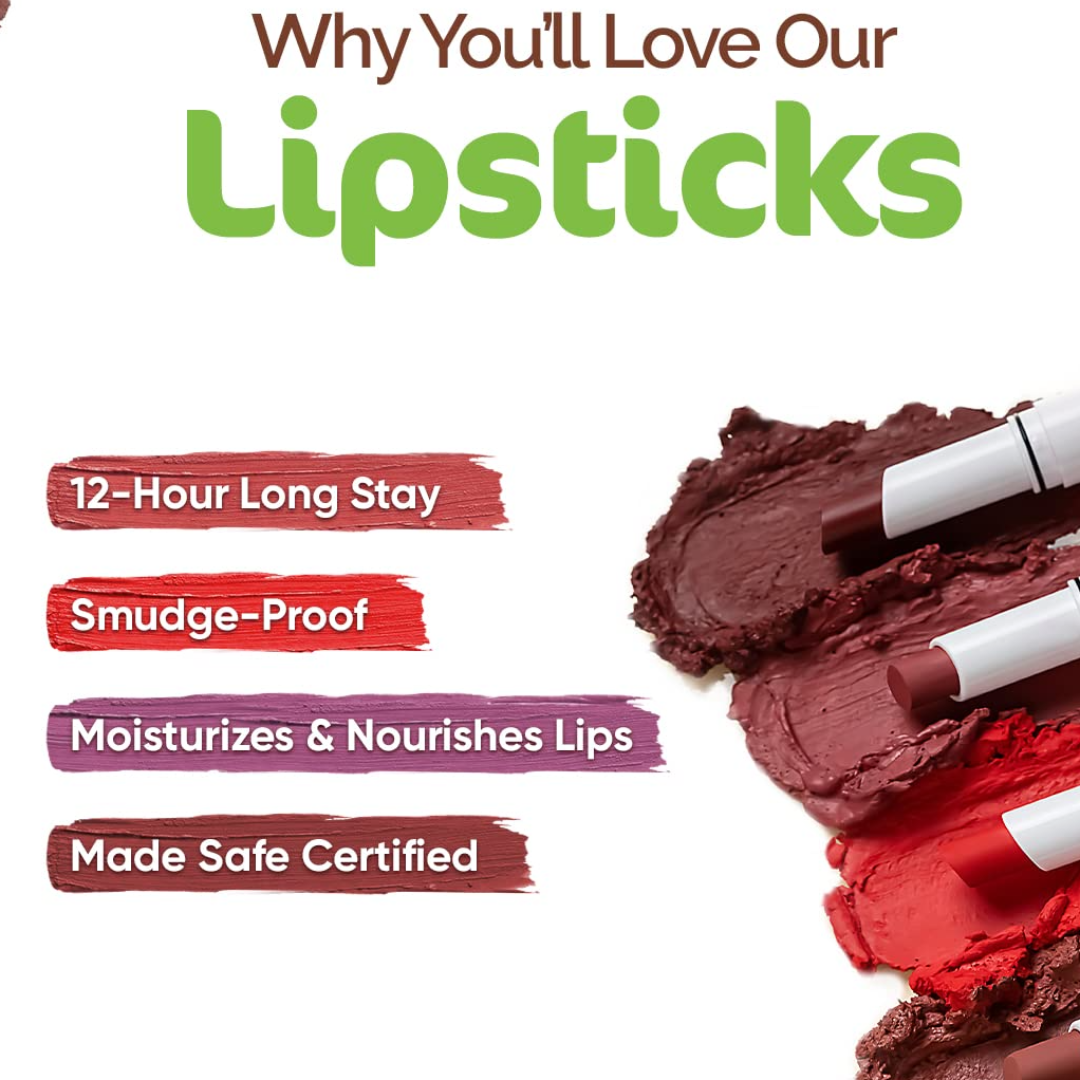 MADE SAFE CERTIFIED: No nasties, no toxins! Just a beautiful matte color and oodles of care, for your lips only! Mamaearth Moisture Matte Longstay Lipsticks are dermatologically tested and are safe for all skin types.<br>
