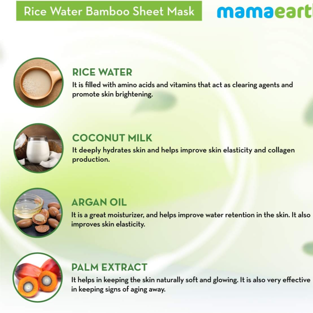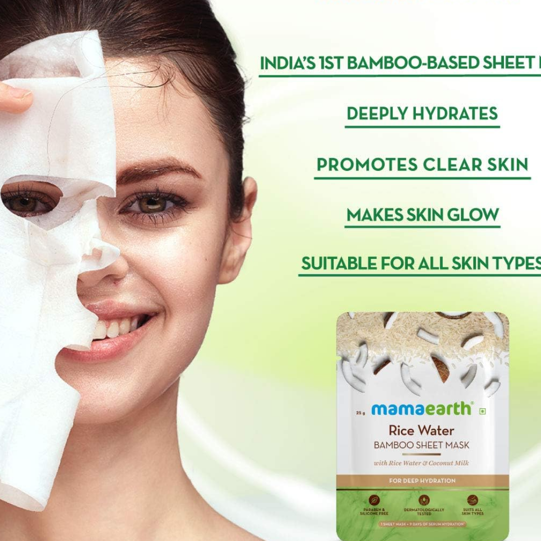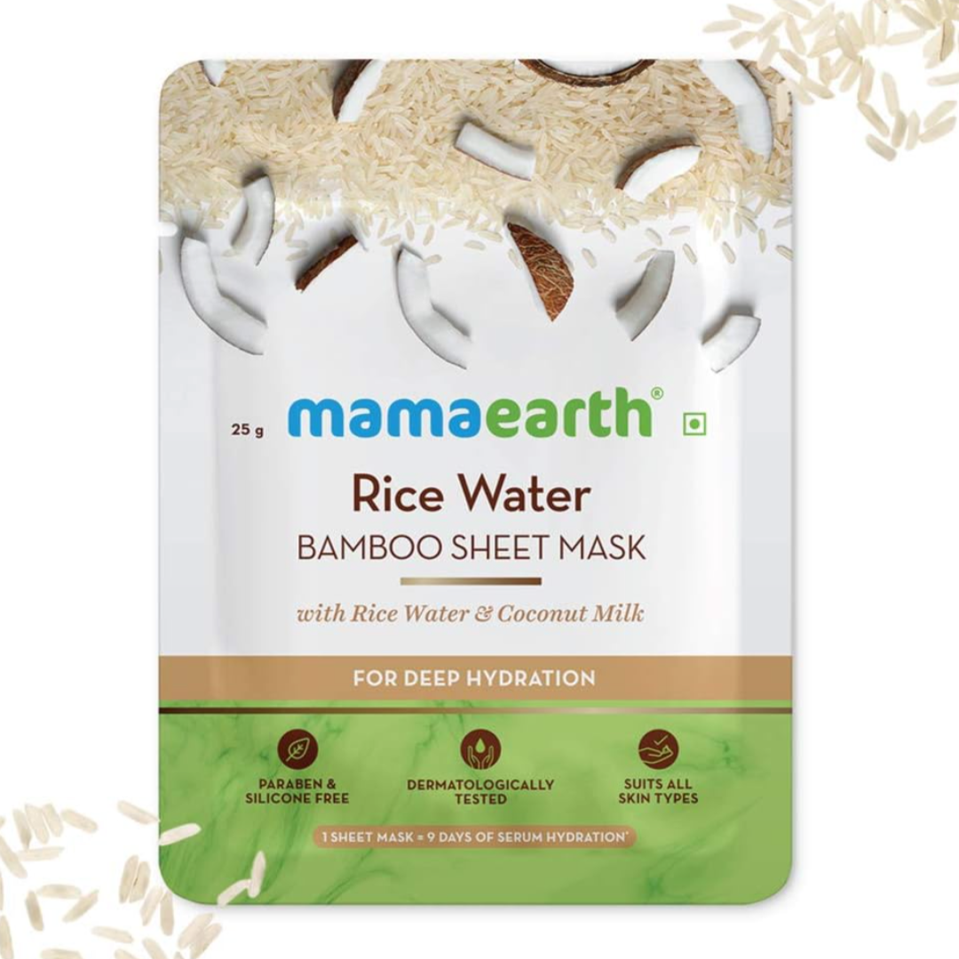 Mamaearth Rice Water Bamboo Sheet Mask with Rice Water & Coconut Milk for Deep Hydration and Dryness Nourishing Brightening- 25 g