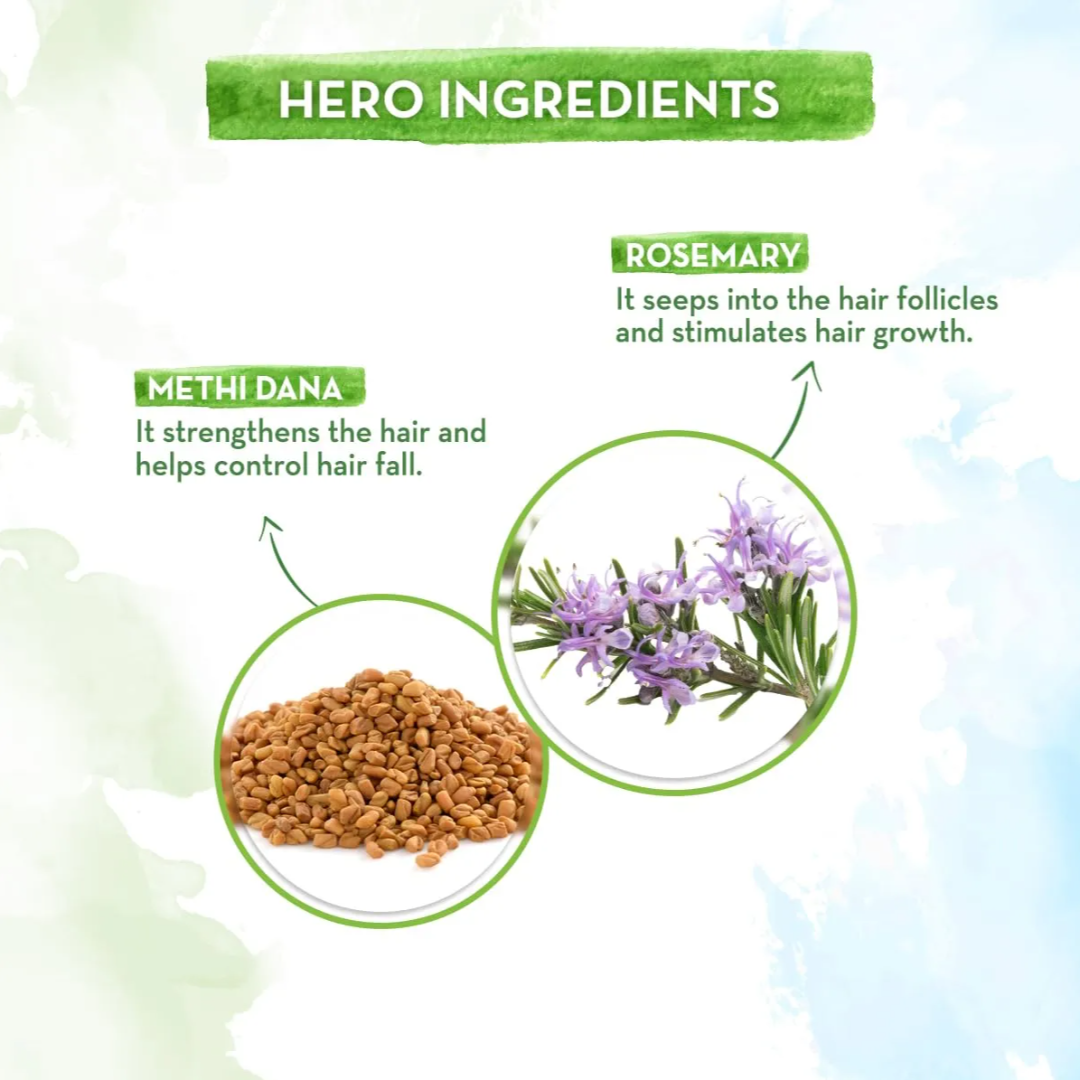 Together, this power-packed duo packs quite a punch. In turn, the Rosemary Anti-Hair Fall Shampoo gives you up to 94% stronger hair* and results in up to 93% less hair fall. Rosemary strengthens weakened hair follicles and promotes hair growth while Methi Dana is extremely effective in controlling hair fall. It also strengthens the hair follicles and curbs hair shedding. The Rosemary Anti-Hair Fall Shampoo gently cleanses your scalp and hair while fortifying your locks with its nutrient-rich formulation.