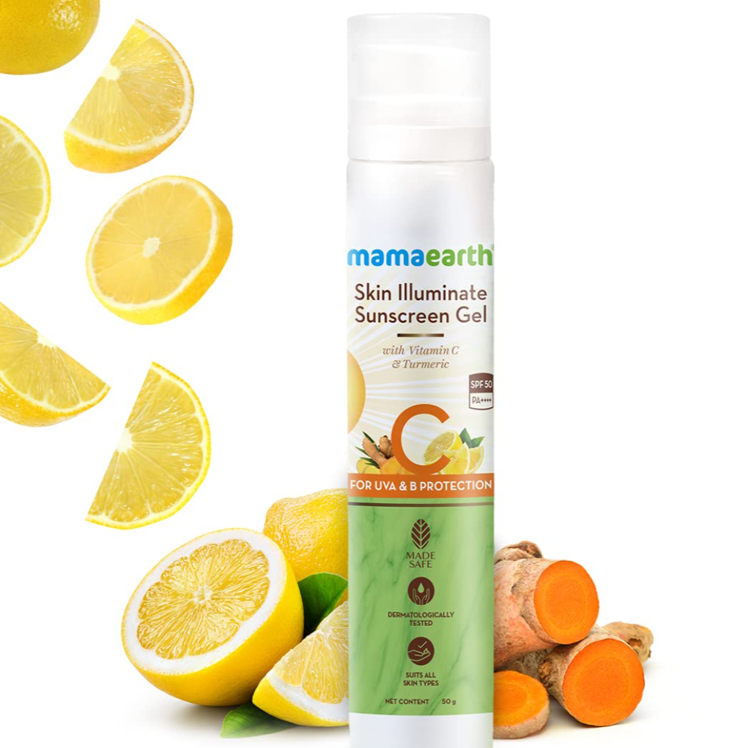 mamaearth Skin Illuminate Sunscreen Gel SPF 50 with Vitamin C & Turmeric for UVA & B Protection - 50 g