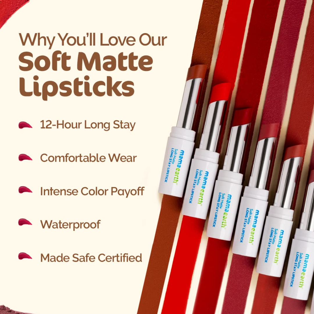MADE SAFE CERTIFIED: Say no to toxins and yes to natural goodness. Soft Matte Long Stay Lipsticks are Made Safe certified and suitable for all skin types.