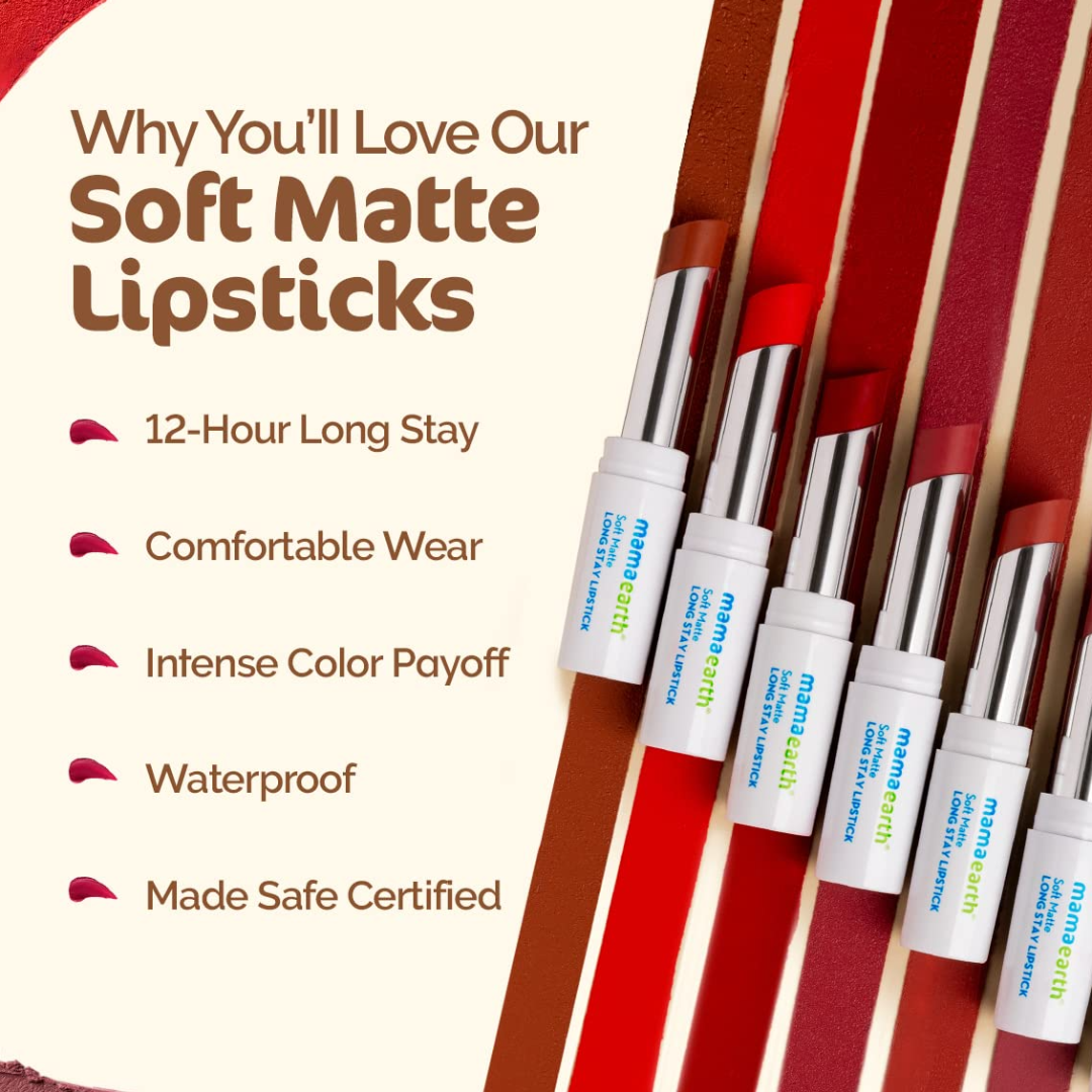MADE SAFE CERTIFIED: Say no to toxins and yes to natural goodness. Soft Matte Long Stay Lipsticks are Made Safe certified and suitable for all skin types.