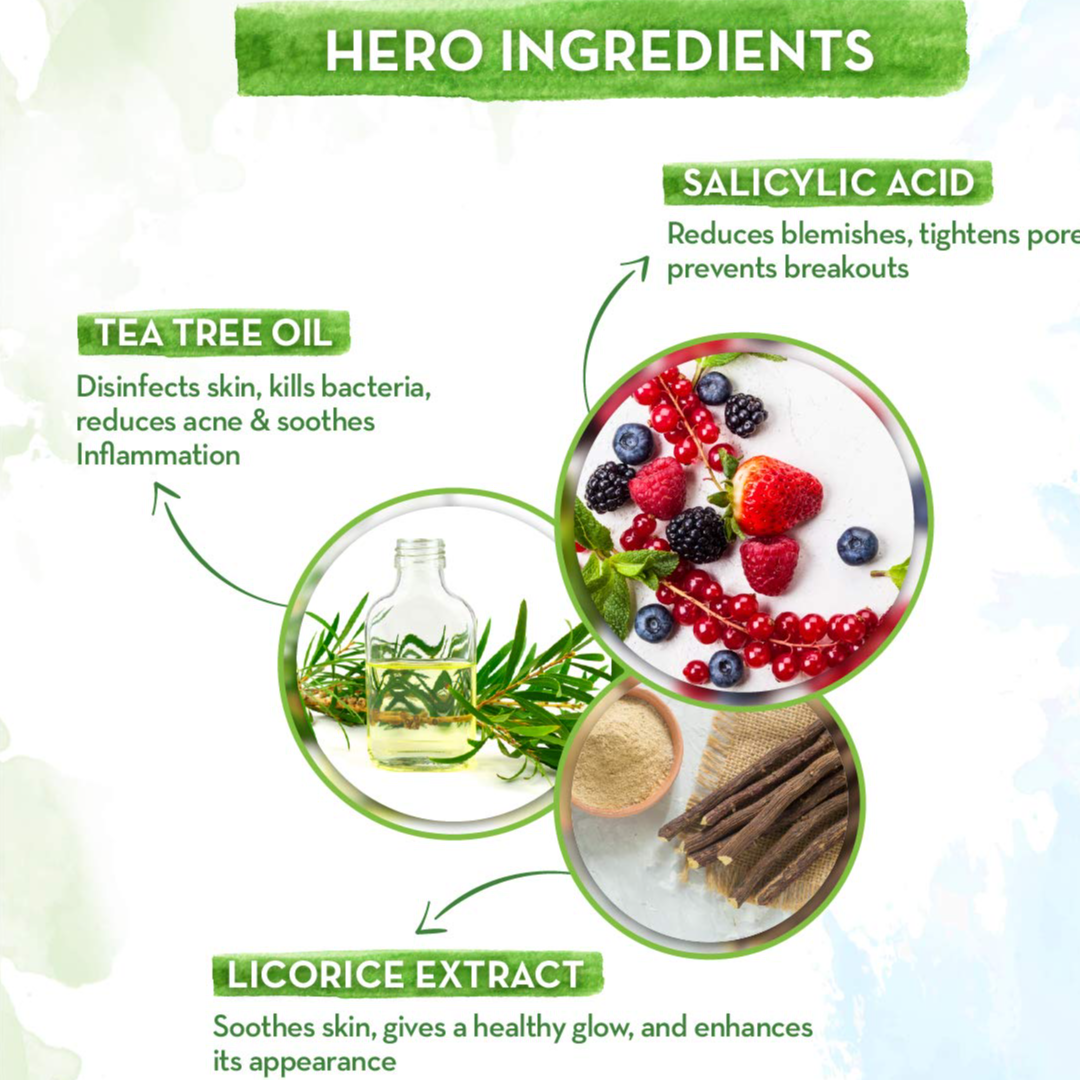 REDUCES BLACKHEADS AND WHITEHEADS: The combination of Tea Tree Oil & Salicylic Acid exfoliates pores to prevent the appearance of blackheads and whiteheads. With clear pores and no debris, blackheads & whiteheads will be a thing of the past. Fast forward to skin goals!