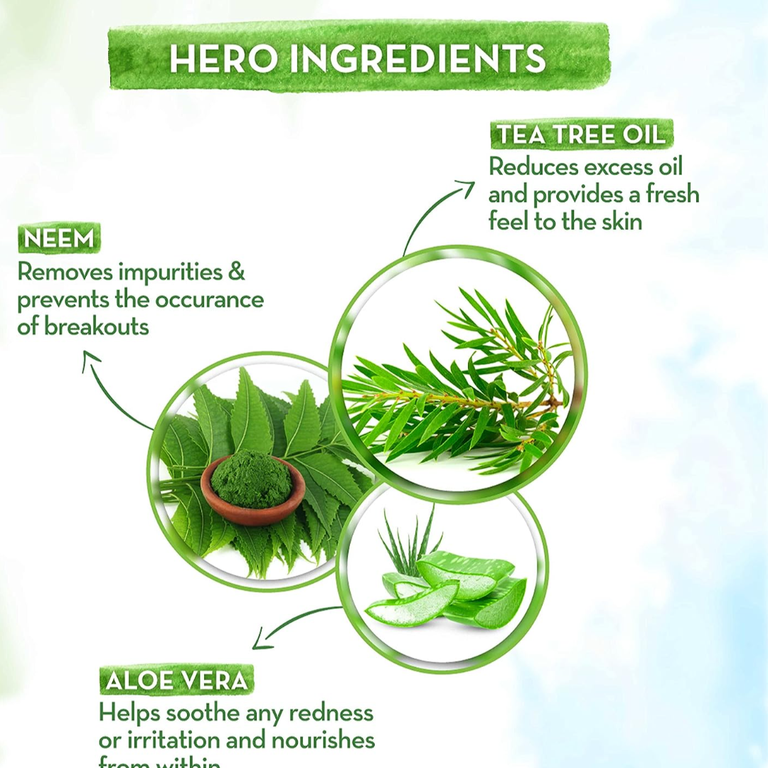 ANTIBACTERIAL:Enriched with neem extract and tea tree oil famous for their natural anti bacterial and cleansing properties, prevents the regular breakout of acnes and pimples.