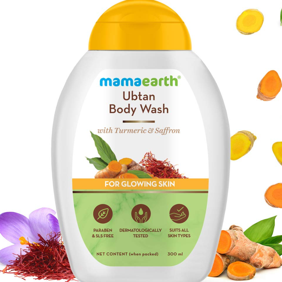 Mamaearth Ubtan Body Wash With Turmeric & Saffron, Shower Gel For Glowing Skin 300 Ml