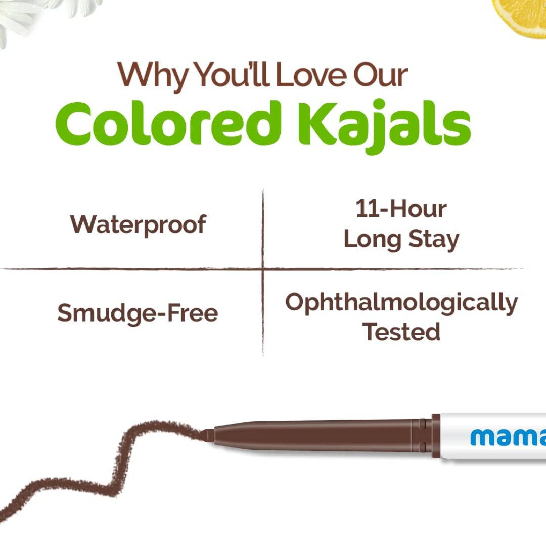 • WATERPROOF: Made with a creamy and waterproof formula that glides easily on your eyelids, Mamaearth Long Stay Colored Kajal is going to be your secret to fuss-free makeup!