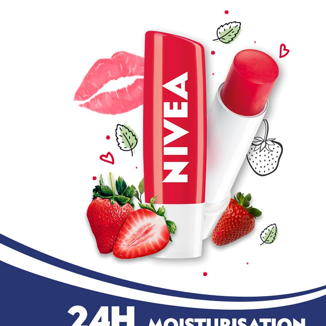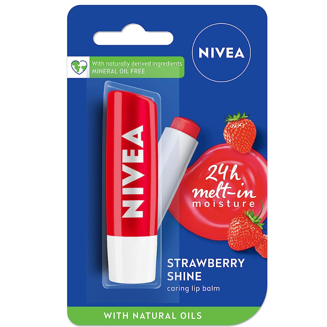 Get long lasting moisturization with NIVEA strawberry shine caring lip balm.