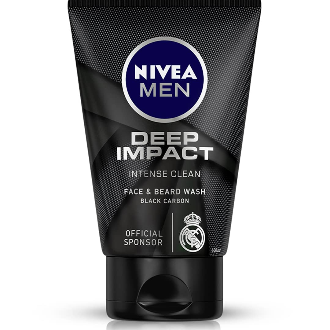NIVEA MEN Face Wash, Deep Impact Intense Clean, Face & Beard Wash,100ml