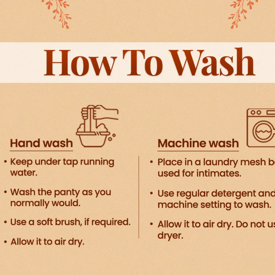 Seamless Periods- Floren Reusable Period Panty will last you 60 washes. So, use an SLS and Paraben-free wash to maintain the quality of the period panty. Just rinse it with the wash and water and leave it to air dry.