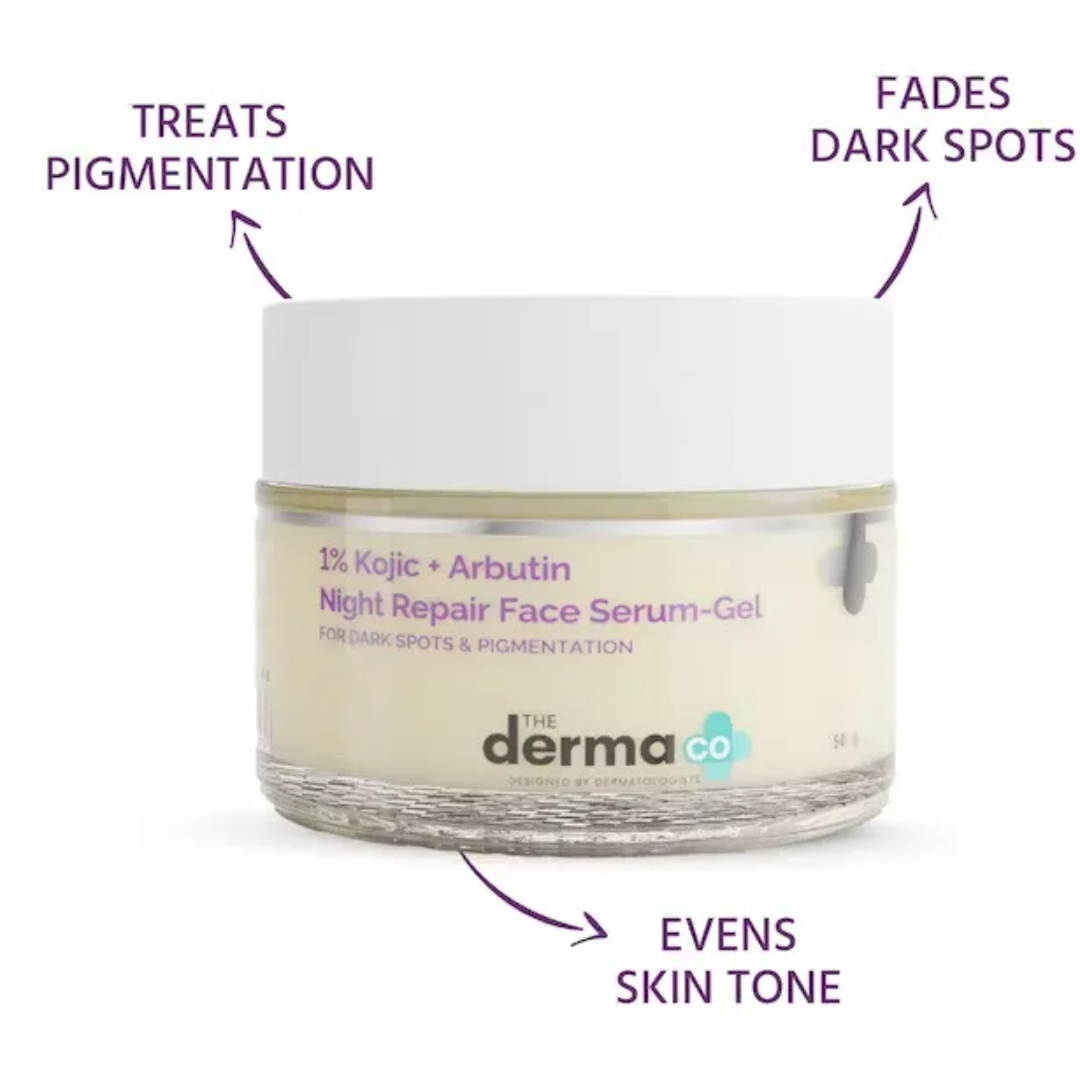 The Derma Co 1% Kojic + Arbutin Night Repair Face Serum-Gel for Dark Spots & Pigmentation - 50g