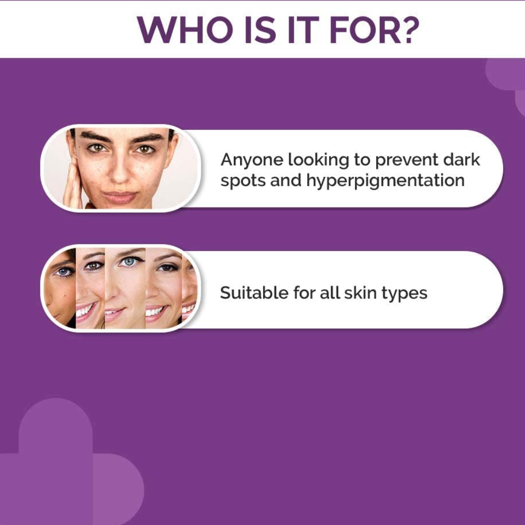 WHO IS IT SUITABLE FOR: Suitable for all skin types, this serum is for anyone looking for a solution for dark spots and hyperpigmentation.