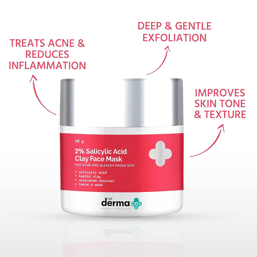 DEEP & GENTLE EXFOLIATION: The Derma Co. 2% Salicylic Acid Mask binds to the dirt and helps flush it out of the pores, making enlarged pores less visible. It also helps remove dead skin from the surface, allowing other products like moisturizers and serums to penetrate easily into the skin and work with more efficiency. You will surely be hooked from the first use!