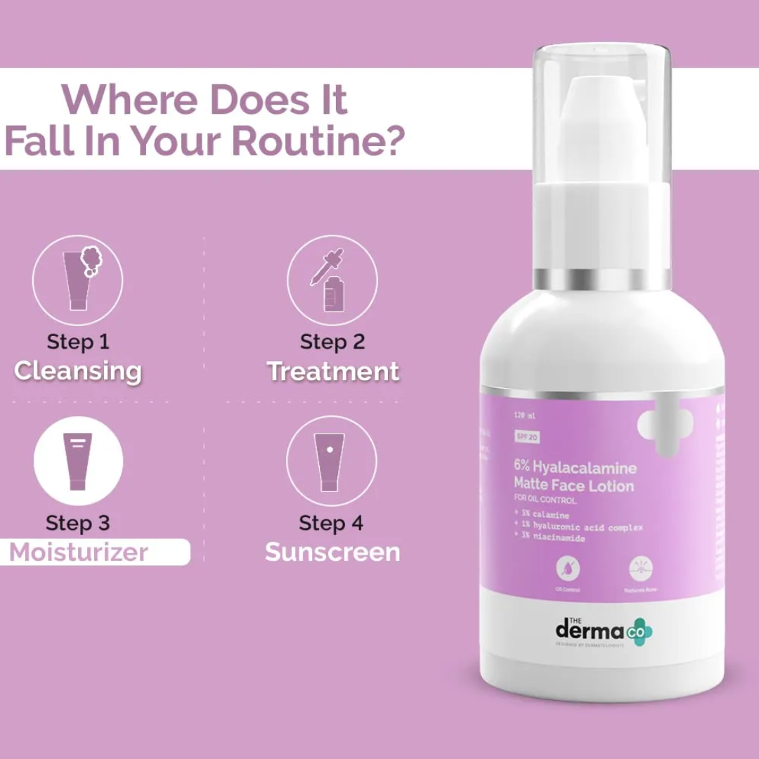The Derma Co 6% Hyalacalamine Matte Face Lotion with Calamine & Hyaluronic Acid for Oil Control - 120 ml