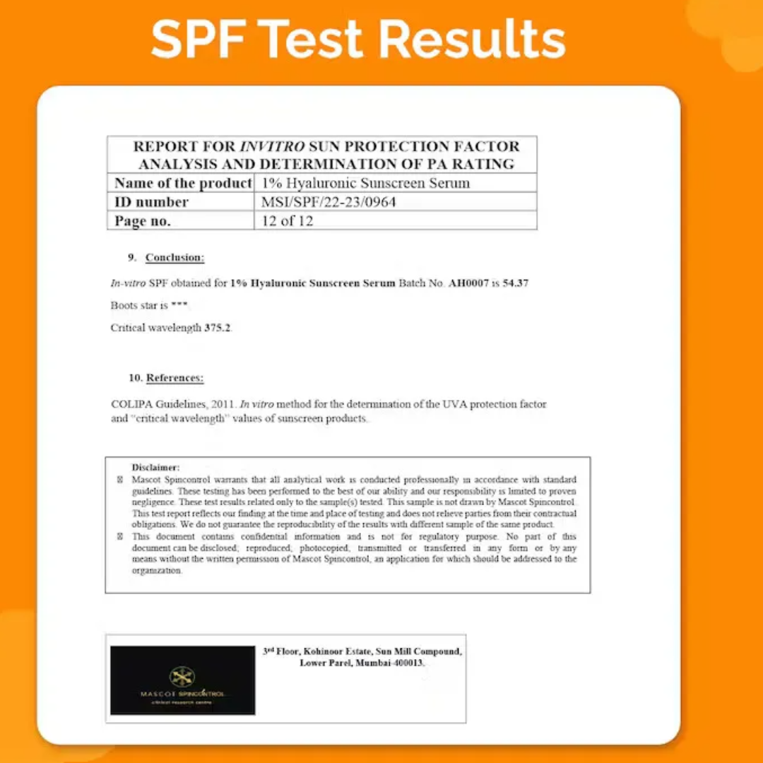 BROAD SPECTRUM PROTECTION: The 1% Hyaluronic Acid Sunscreen Serum comes with SPF 50 PA+++, 1% Hyaluronic Acid & Niacinamide to offer the best protection & healthy skin.