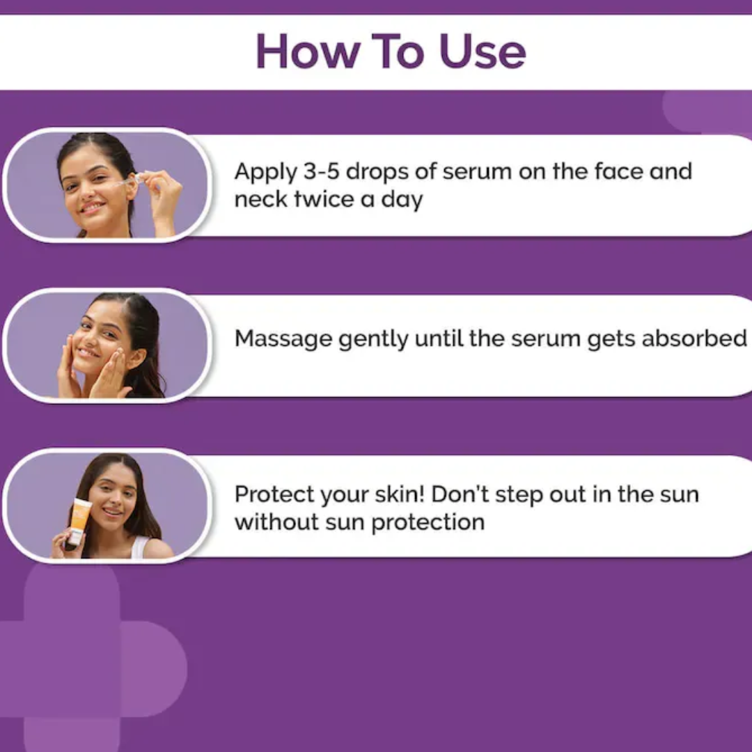 SAFE & EFFECTIVE FORMULATION: Free from mineral oil, dye, parabens, and sulfates, this serum for pigmentation and dark spots is a safe & effective formulation that offers visible difference in 3-6 weeks.; WHO IS IT SUITABLE FOR: Suitable for all skin types, this serum is for anyone looking for a solution for dark spots, skin discoloration, sun damage and pigmentation.